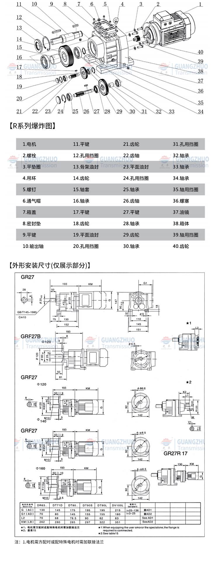 R系列斜齿轮硬齿面减速机 运行稳定 RXF 组合性好 光卓传动